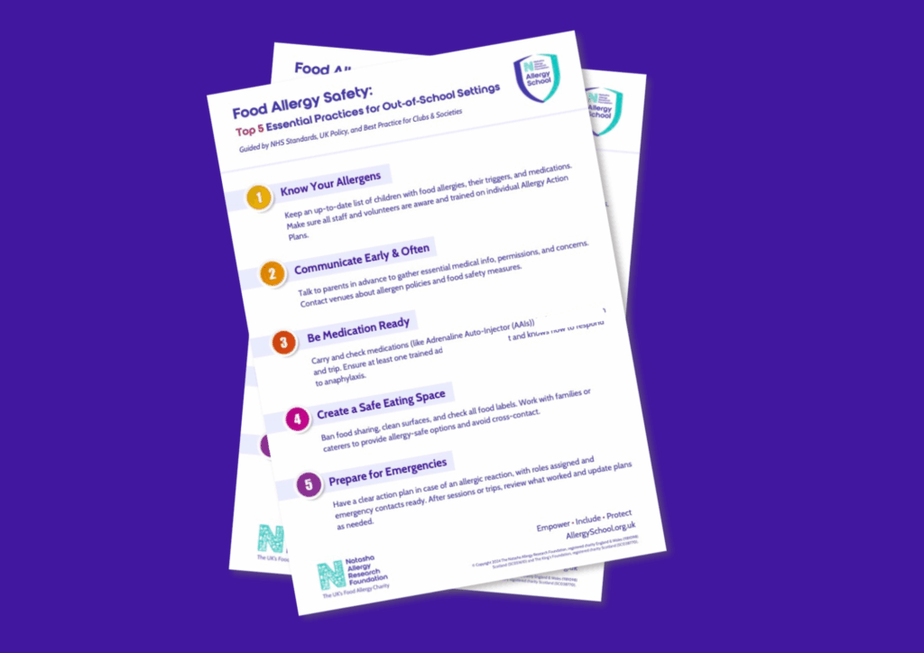 Children with food allergies should be safe wherever they play, learn, and grow. These resources empower clubs, holiday camps, and out-of-school settings to take confident, informed steps to prevent allergic reactions and respond effectively when needed.
